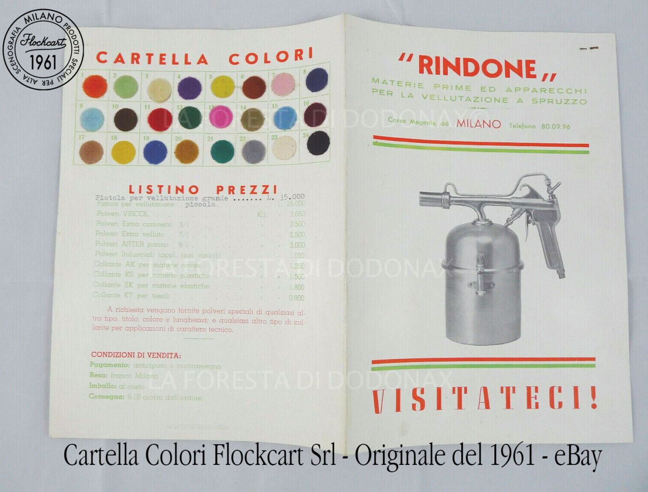 Il 14 novembre del 1961 Giovanni Rindone fonda la Flockcart srl Industria Carte Vellutate. Nella fabbrica di Lierna sul lago di Lecco inizia la produzione di carte vellutate, destinate alle argenterie, alle posaterie ed agli astuccifici e le polveri di Velluto utilizzate nella produzione, coloratissime, calde e coprenti, attirano l’attenzione dei primi scenografi che le utilizzeranno nei loro impianti scenografici aprendoci le porte del bellissimo mondo dello Spettacolo, permettendoci di dar sfogo alla nostra fantasia che introdurrà moltissimi altri splendidi materiali.