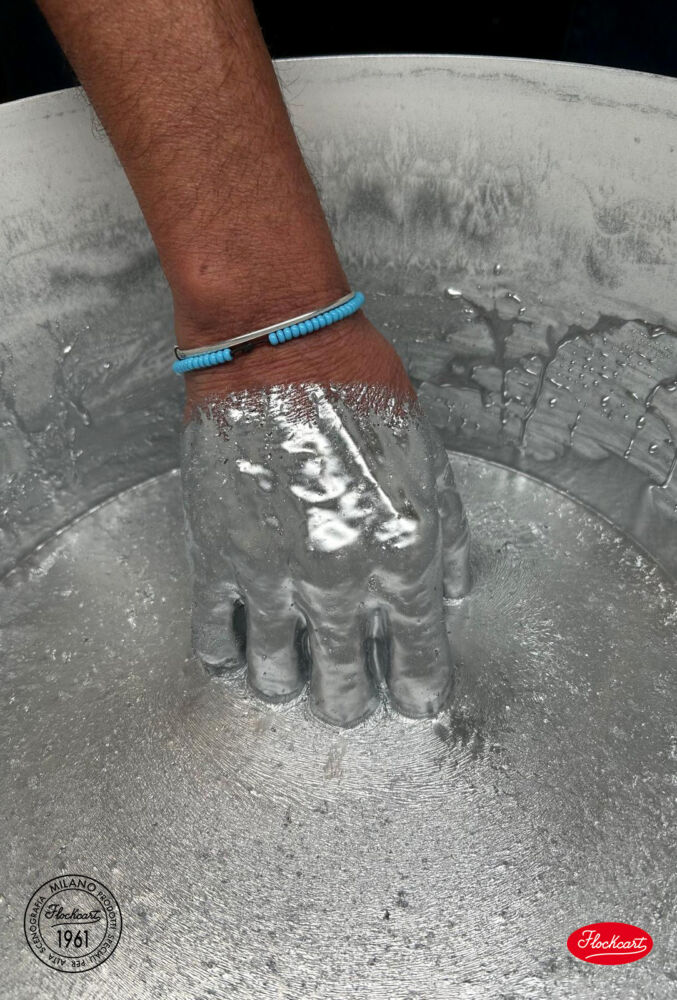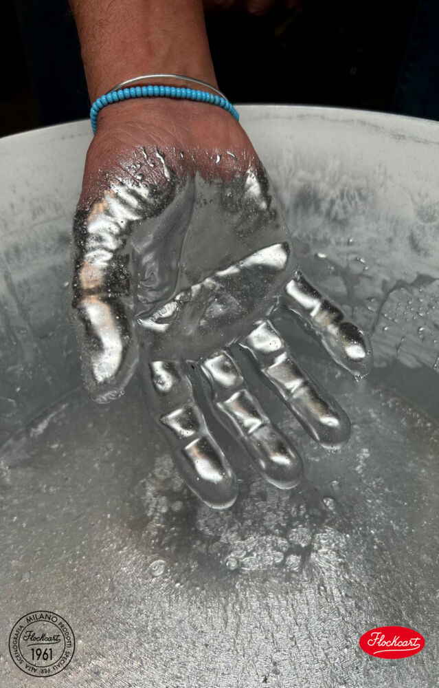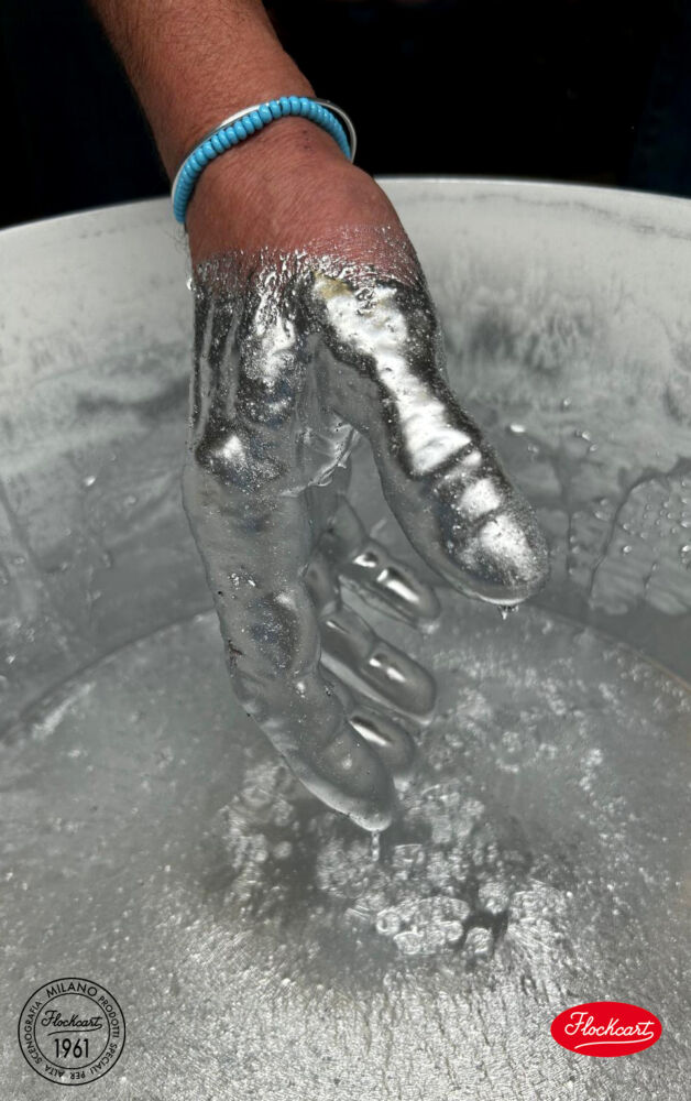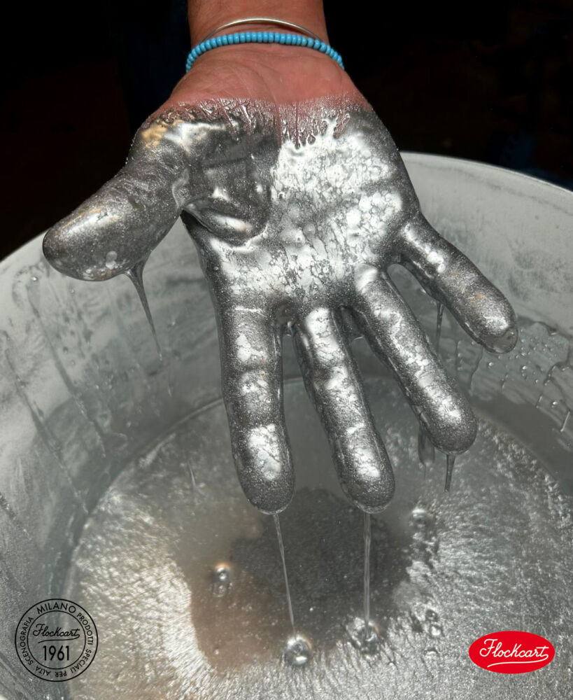 La richiesta era per un fluido che colasse lentamente con un effetto Cromo/Mercurio.